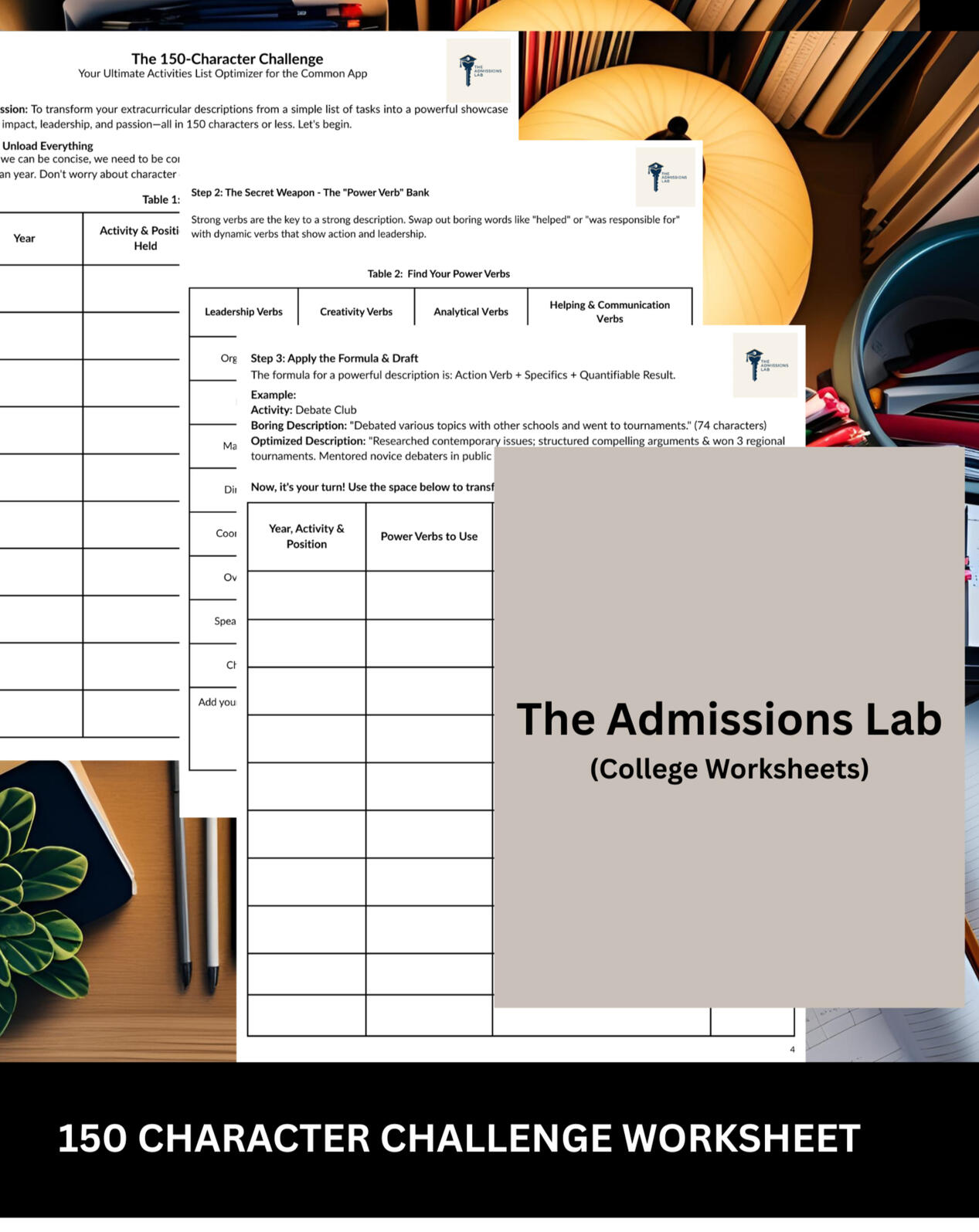Our suite of expert-designed worksheets and planners provides a clear, systematic framework for every part of your application, from the Personal Statement to the final Activities List.